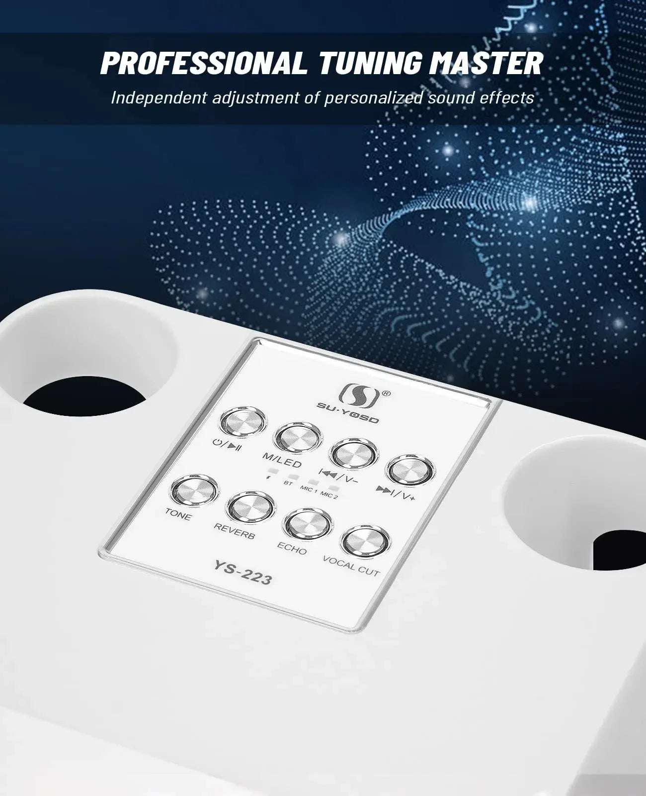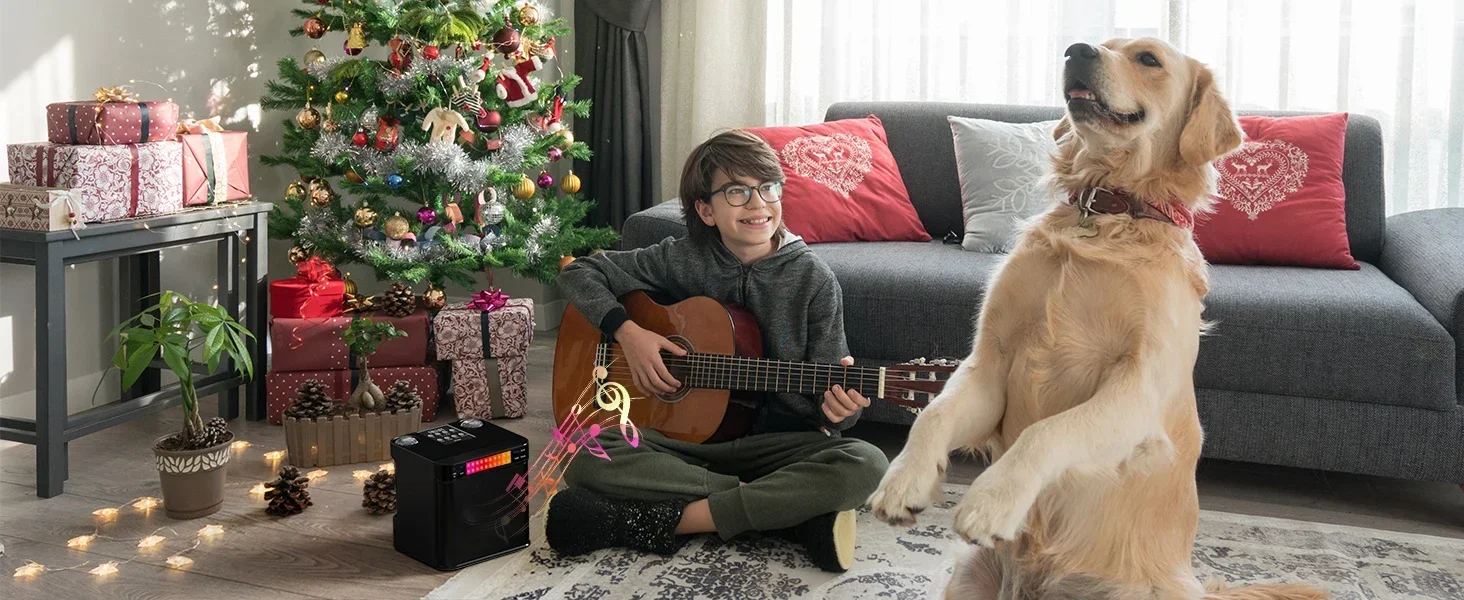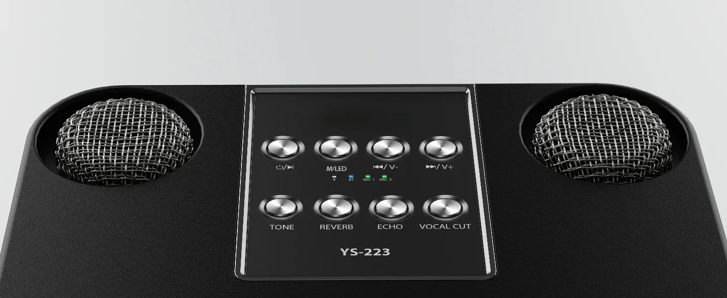 �� 【Dual wireless UHF microphones with 7 interesting sound effects】 Duets and dance performances must be equipped with two microphones. Our Bluetooth karaoke machine is equipped with 2 wireless microphones, with original, monster, baby, female voice, male voice seven magical sound effects, 2 mixes, to meet more needs, bring more fun. This wireless microphone with speakers uses advanced active noise cancellation technology and a professional DSP audio processor.