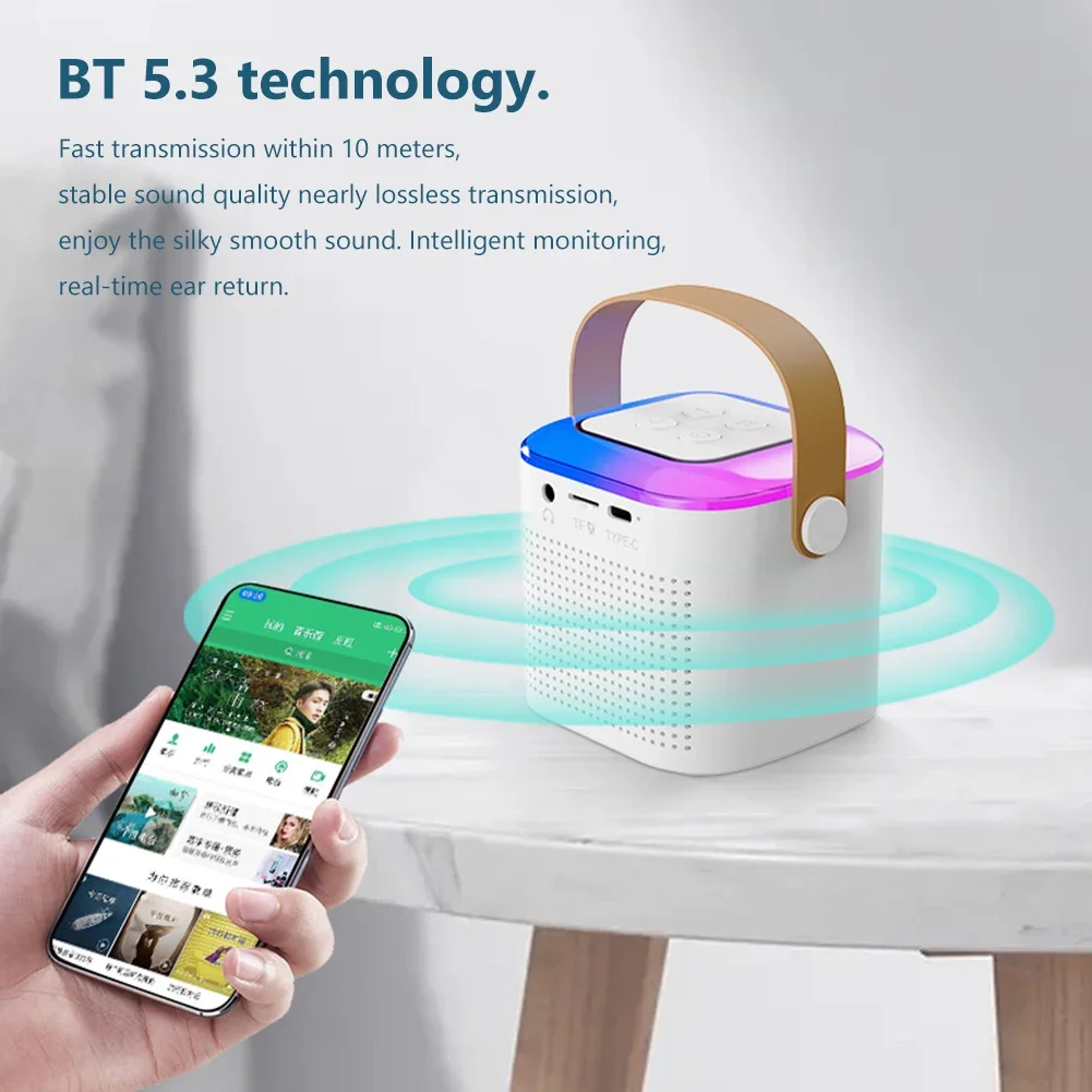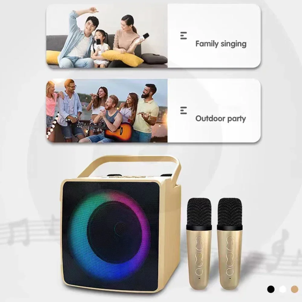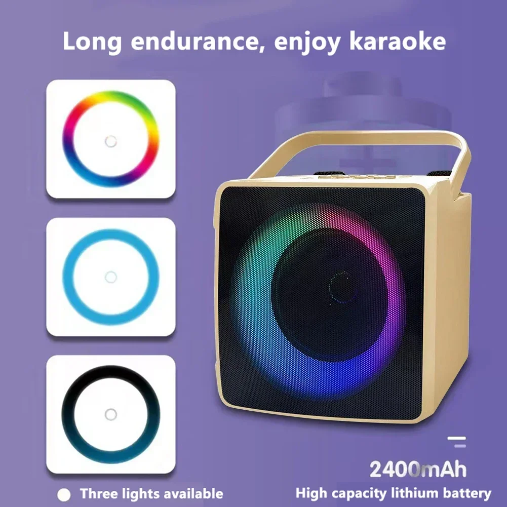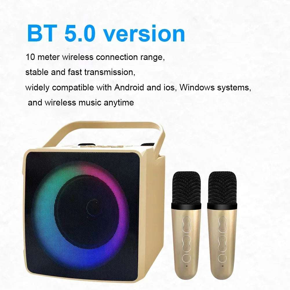 Mini Portable Bluetooth-compatible Speaker 10W HIFI Player with Dual Wireless Microphones Karaoke Machine with RGB LED Light Support USB/TF card/AUX/U Disk for Kids Adults Gifts Toys For Family Home Party