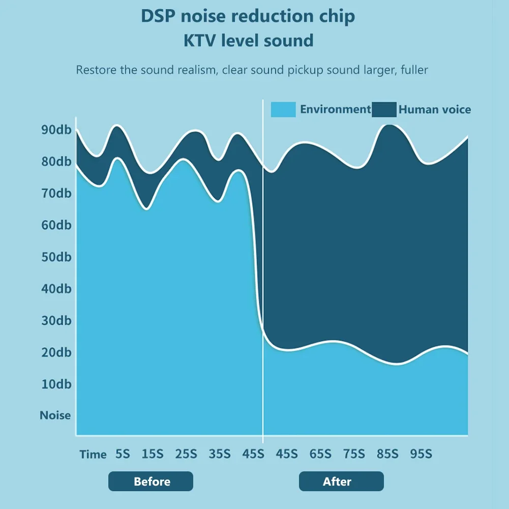 2. Stereo Sound Quality: Equipped with dual microphone portable karaoke speaker, this system features high-quality audio drivers and digital signal processors that deliver rich and immersive sound. The professional-grade K-song DSP decoding eight-core chip produces full-bodied and dynamic sound. The 360° surround noise-canceling microphone ensures clear and powerful voice capture and eliminates background noise interference.