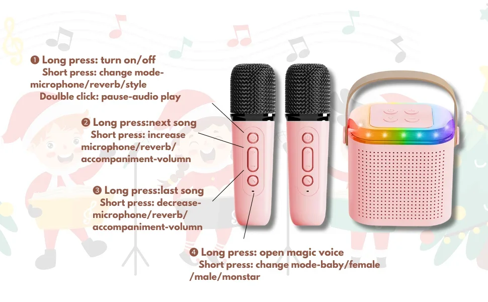 4. Voice Effects: This subwoofer music offers various magical and fun sound effects such as male-to-female voice switching, magic voice mode, and child voice mode. The microphone speaker is perfect for family gatherings, classroom activities, and other entertainment events.