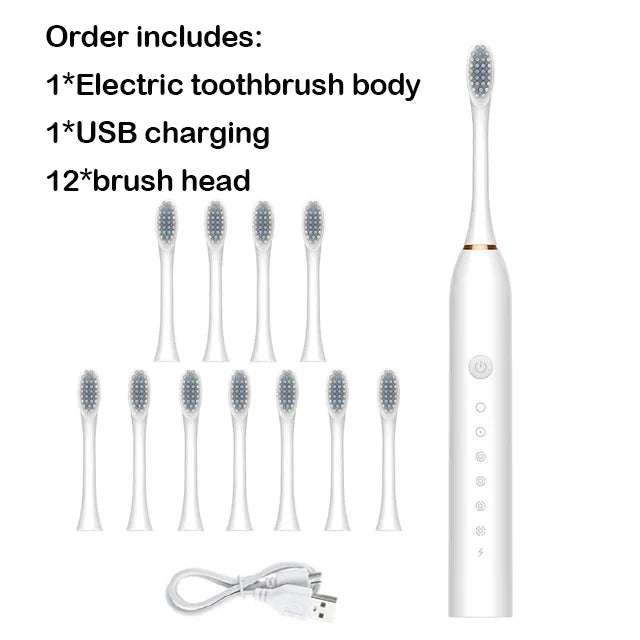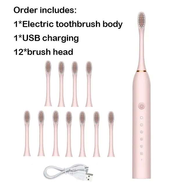 Rechargeable electric toothbrush has 6 brushing modes, which can meet all the needs of tooth cleaning: novice, gentle, cleaning, whitening, polishing, massage