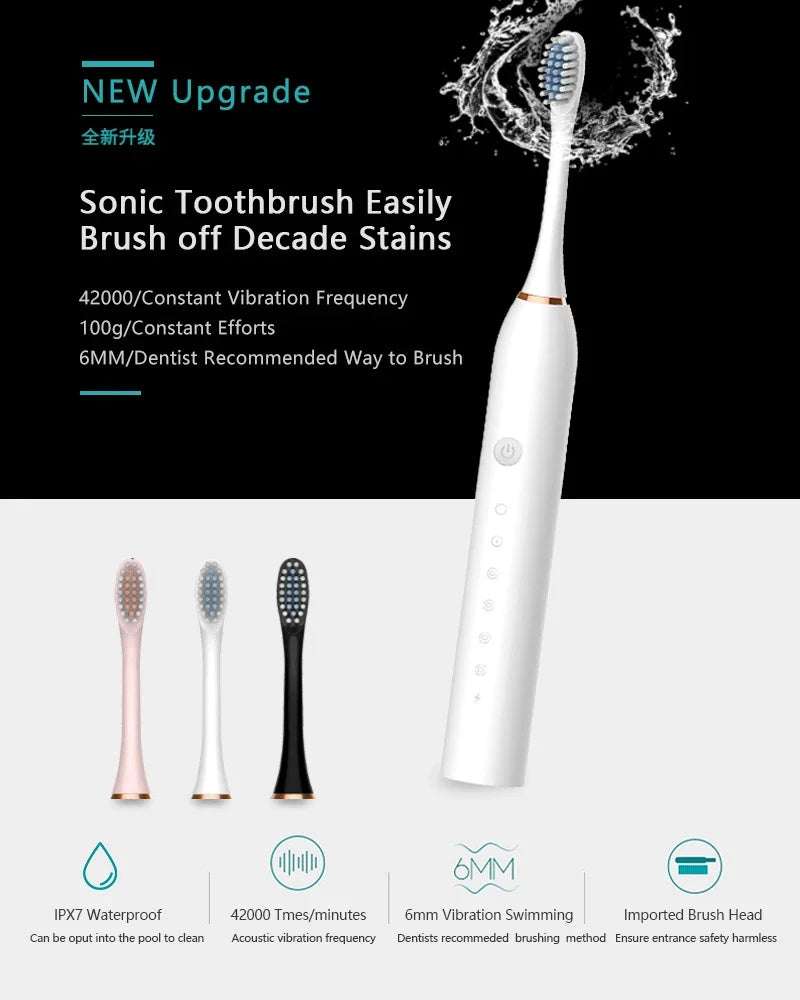 Sonic Electric Toothbrush Adult Smart Timing Tooth Brush Teeth Clean Whitening