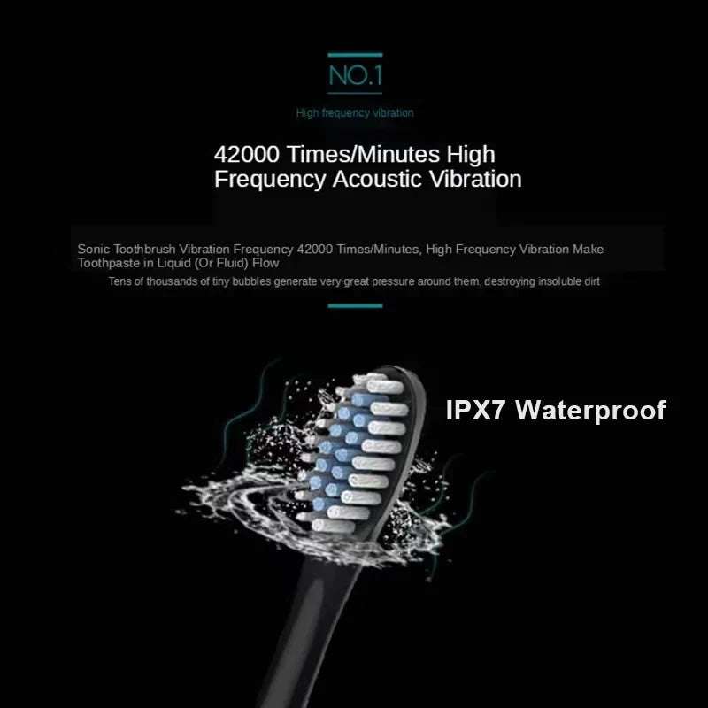 Electric toothbrush is equipped with a super-powered motor, which can generate 42,000 VPM/Min.